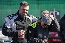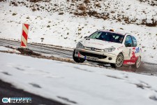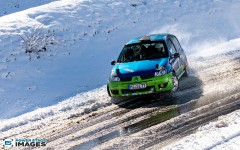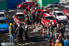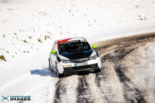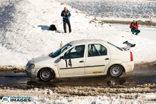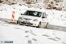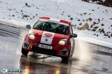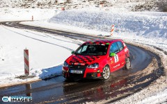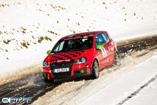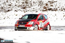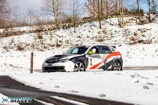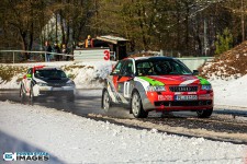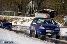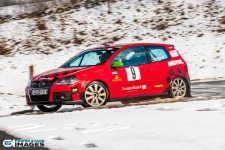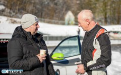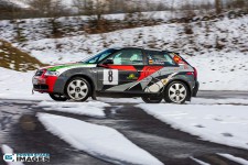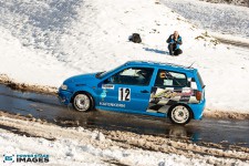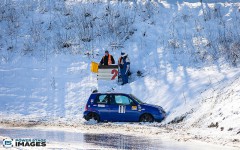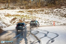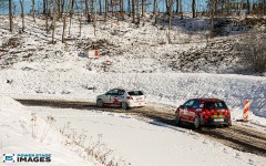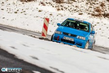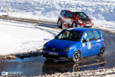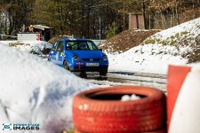Schnee auf dem Heidbergring - die Teilnehmer und wir wurden dieses Jahr vor eine neuen Herausausforderung gestellt. Die Teilnehmer konnten zwar mehrere Einführungsrunden fahren, die Verhältnisse blieben trotzdem schwierig. Besonders die erste Startergruppe hatte zu kämpfen. Von Startergruppe zu Startergruppe wurde die Strecke jedoch schneller. Und so war der Stand nach der 1. WP überraschend, aber auch durch eine geeignete Reifenwahl begünstigt. 1. Dirk Schlerfer / Vanessa Dagge und 2. Marcel Reinhold / Christian Wollermann; die beiden Teams aus der NC8, der vermeintlicht schwächsten Klasse im Feld.